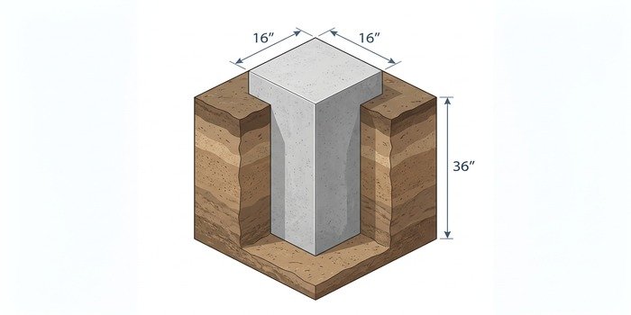 A 16x16x36 footing is commonly used for supporting deck posts, pergola posts, fence posts, and small porch columns. Its size fits well for single-point supports where the load is relatively light. This footing can be placed below ground to help anchor wooden or metal posts that hold up outdoor structures like decks or small covered porches. It’s a practical choice when you need a solid base without going too large or deep.